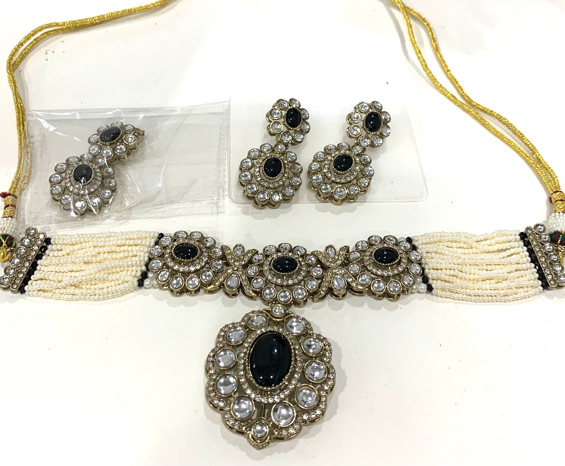This choker set includes a black pendant that adds a touch of elegance to any outfit. Made from high-quality materials, it offers a stylish and versatile accessory for any occasion. The sleek design and quality craftsmanship make it a must-have for any fashion-forward individual.